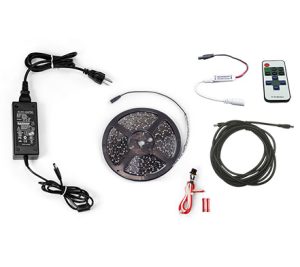 - 16′ of RGB Color (15 color options and white) LED Lighting with 3M adhesive backing